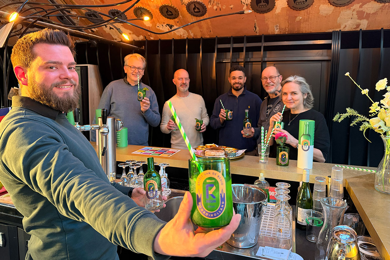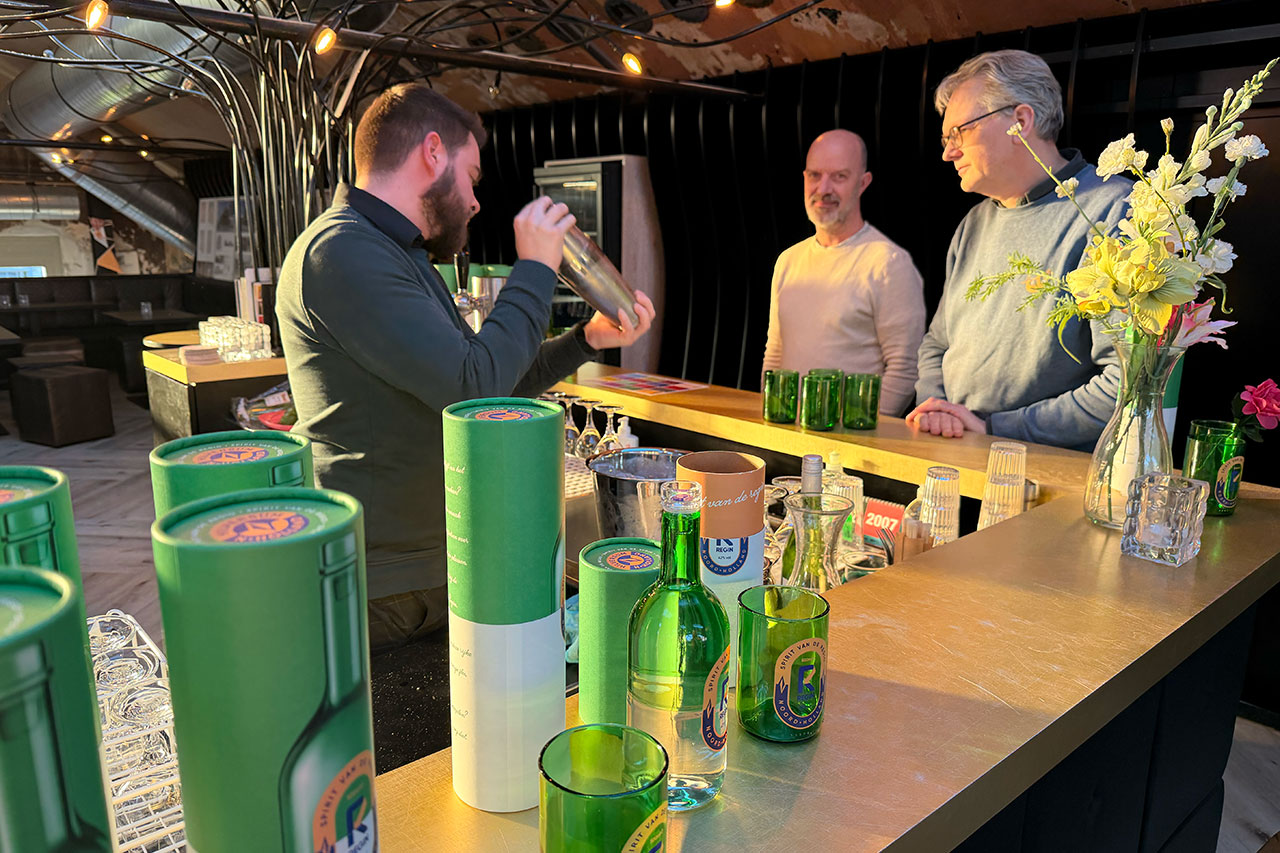 ‘In Mout worden per dag honderden flessen wijn weggegooid’, vertelt Jeroen. ‘Waarom zou je die reststromen niet upcyclen? We laten met ReGin zien dat je met reststromen een volwaardig en luxe product kunt creëren. Dit concept kan vertaald worden naar andere regio’s met andere smaken. Zo kunnen we in elke provincie een eigen ReGin produceren.