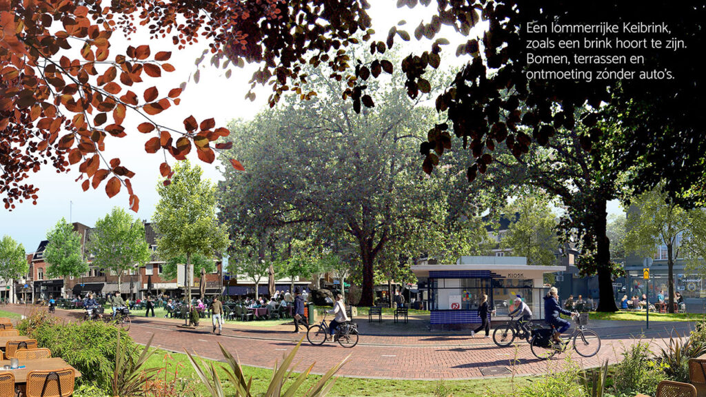 Ons winkel- en horecacentrum maken we weer veilig bereikbaar voor voetgangers, fietsers, OV en auto’s die er moeten zijn door de introductie van groene ontmoetingsplekken waar nu nog doorgaand verkeer domineert.
