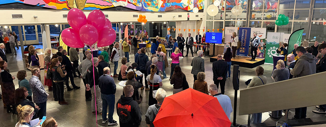Vrijdagmiddag 21 november waren een kleine 200 mensen verzameld in de grote foyer van de Heuvellaan, voorheen MCO. Ongeveer 100 organisaties uit Hilversum deden mee: ruim 50 met een maatschappelijke missie en ruim 40 bedrijven.