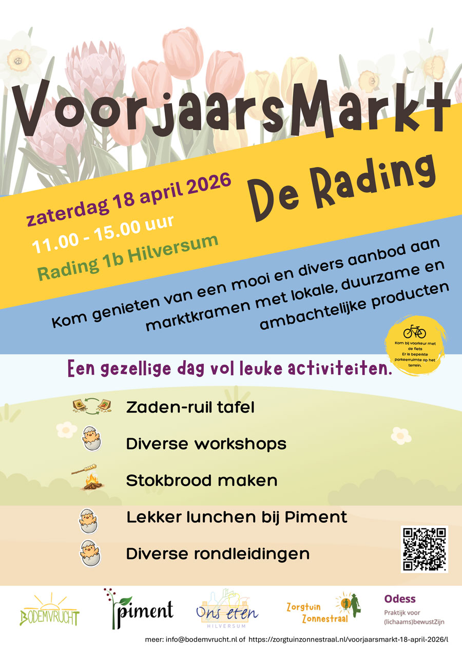 Op zaterdag 18 april vindt op De Rading in Hilversum een gezellige en duurzame voorjaarsmarkt plaats.