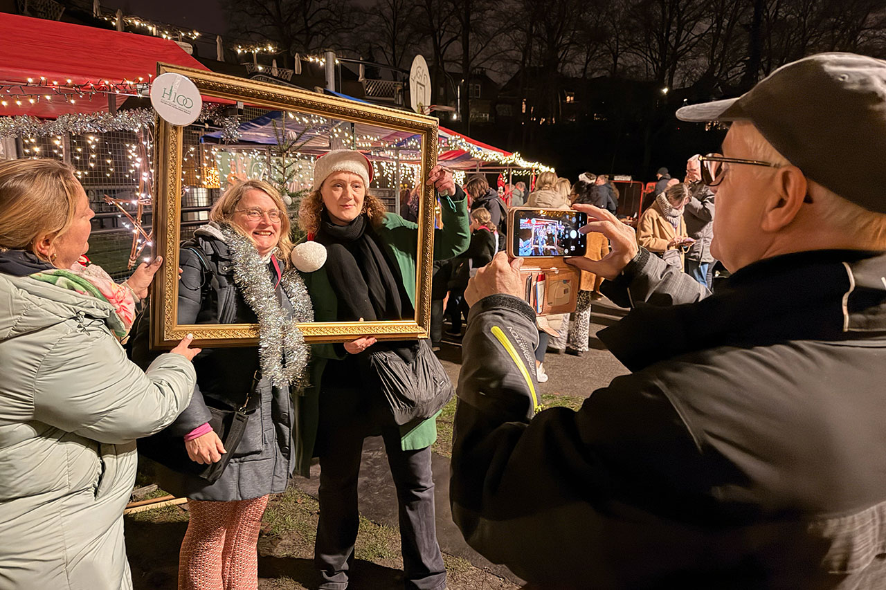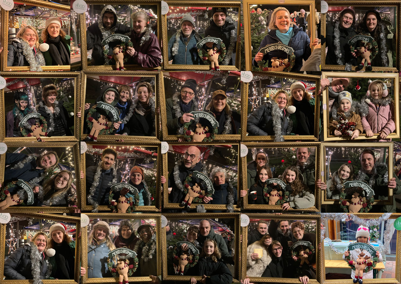 Bij de vrijwilligers van Hilversum100 kon je een vrolijke kerstfoto laten maken.