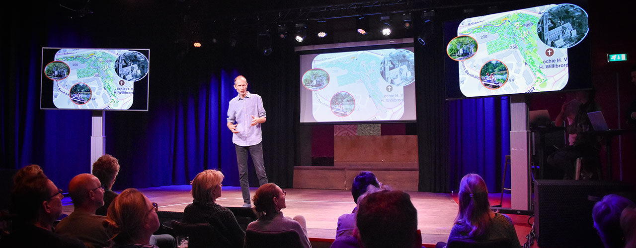 “Wat PechaKucha zo bijzonder maakt, is dat het geen congres is”, zegt organisator Erwin de Swart van Hilversum100. “Je hoeft geen professional te zijn om hier iets zinnigs te zeggen.”