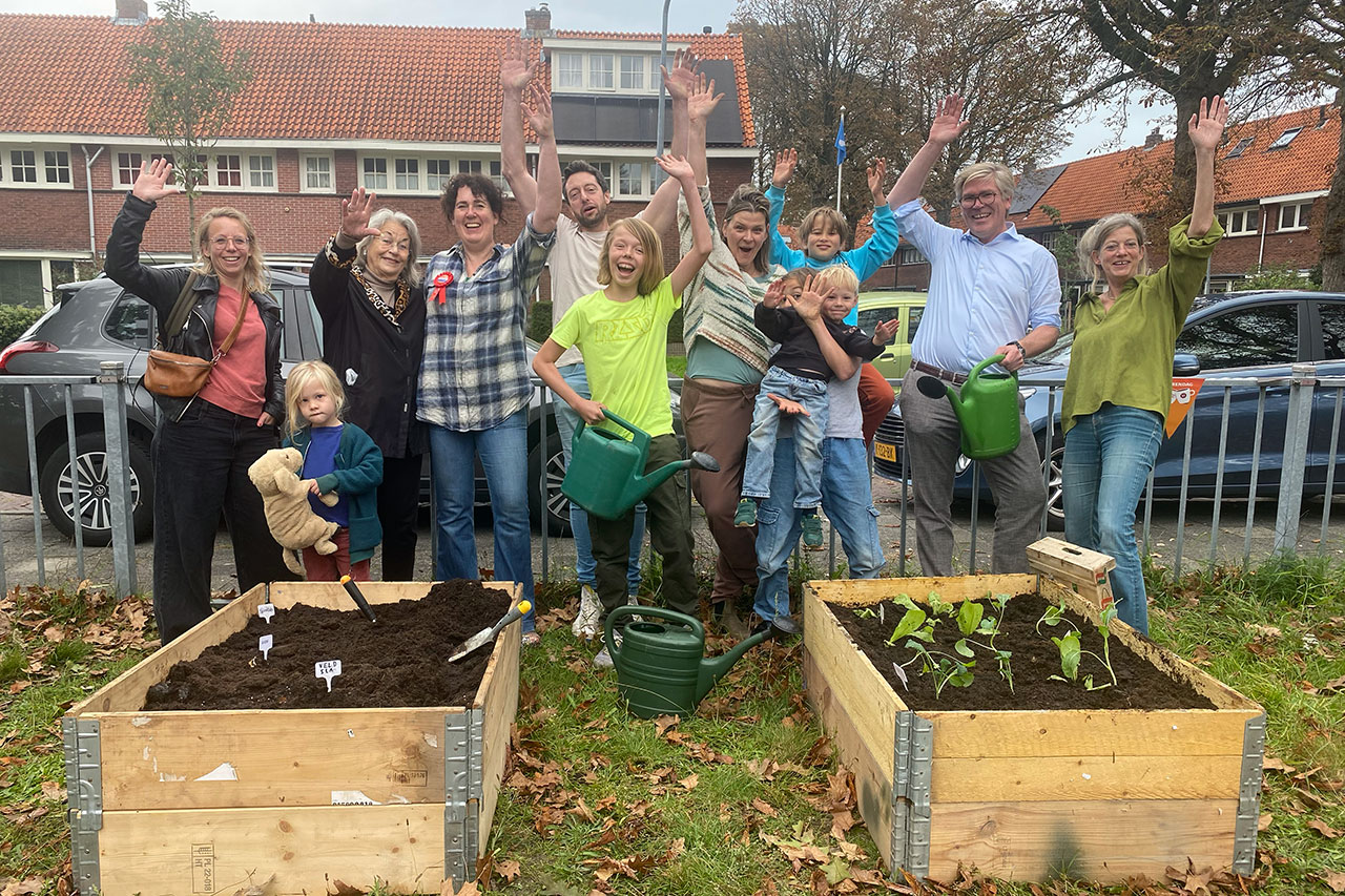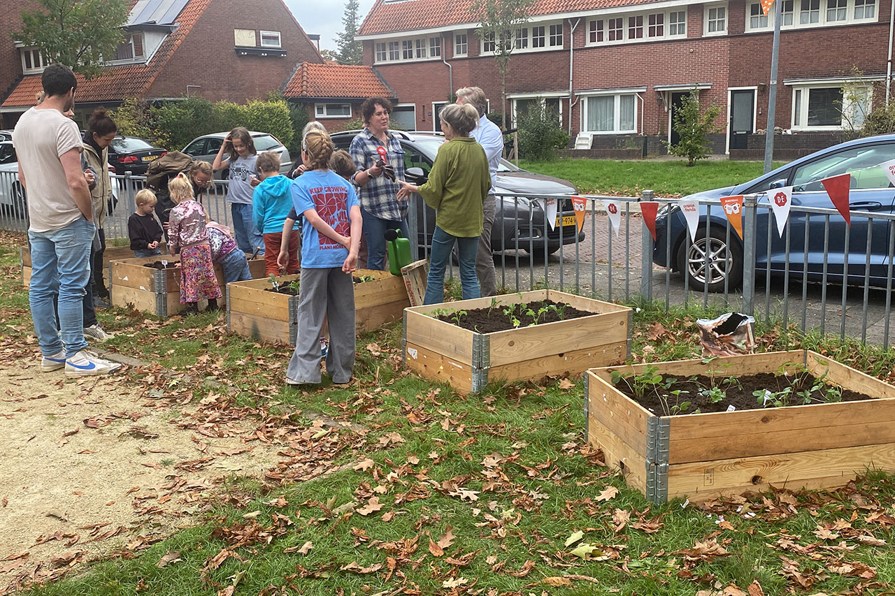 Op burendag – zaterdag 27 september 2025 – installeerden bewoners rond het Wegaplein in Hilversum een pop-up moestuin.