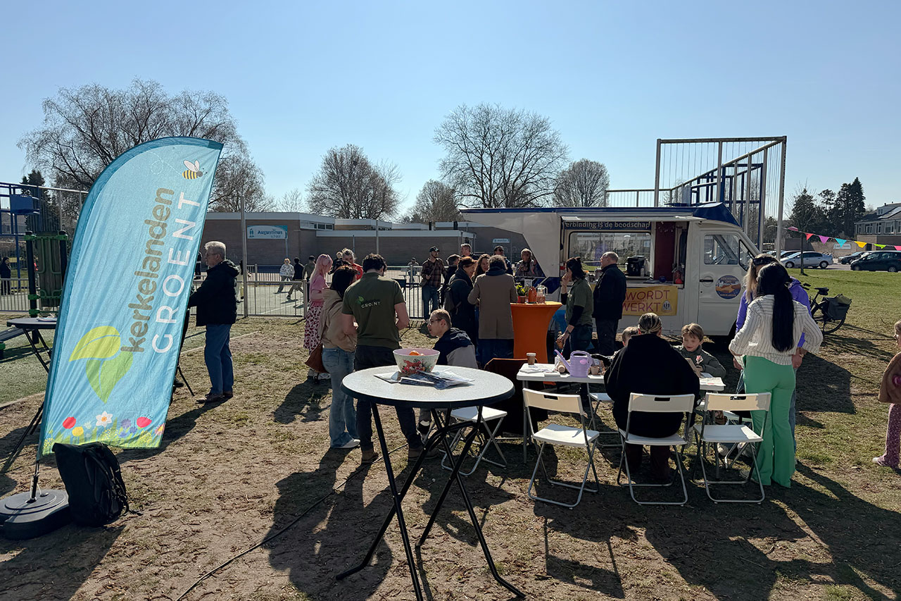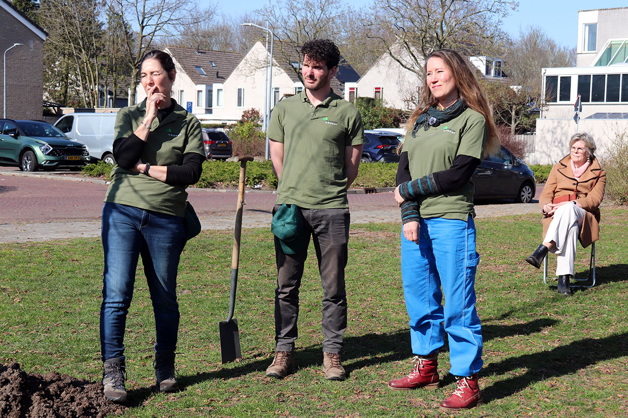 Hij prees en complimenteerde de initiatiefnemers van Kerkelanden Groent en gaf aan dat de gemeente het niet alleen kan. De bewoners die het belang inzien om zich met groen en natuur bezig te houden zijn onmisbaar in een verhaal waarbij de groene, gezonde, sociale leefomgeving mag ontstaan: “Elke boomspiegel en elke straattegel die we kunnen lichten telt.”
