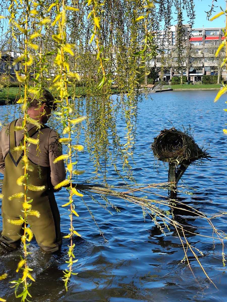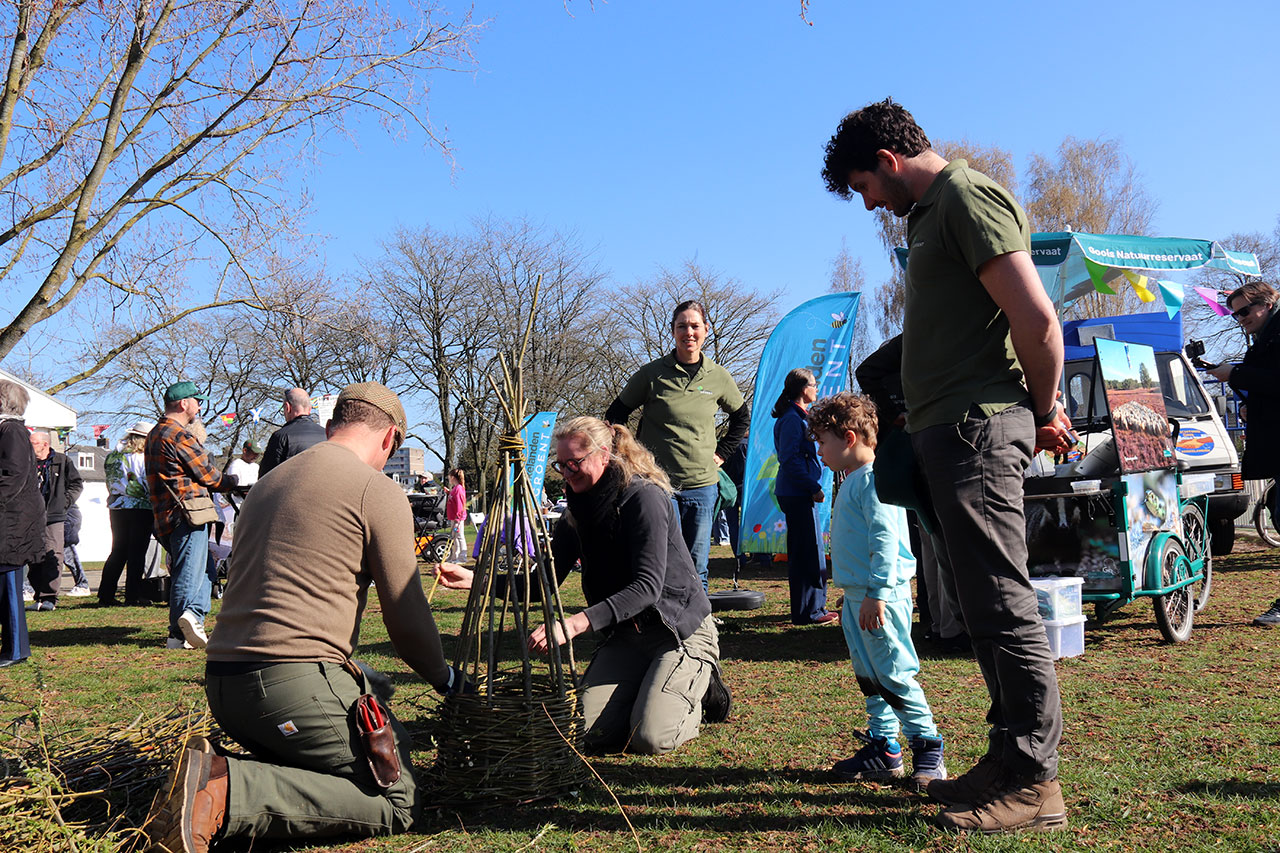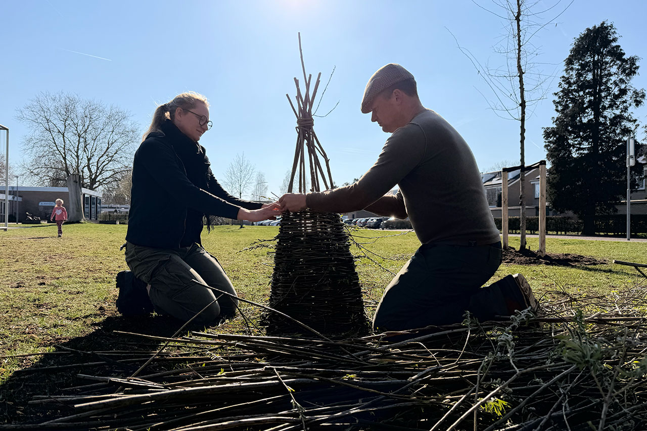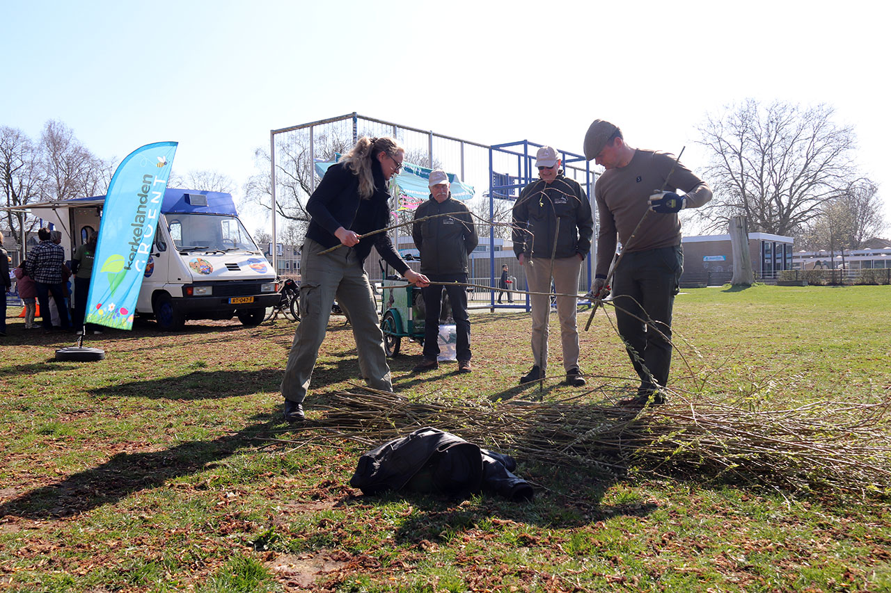 Pier Hoekstra en Meta Vermeer gaven een demonstratie eendenkorven vlechten met wilgentakken.