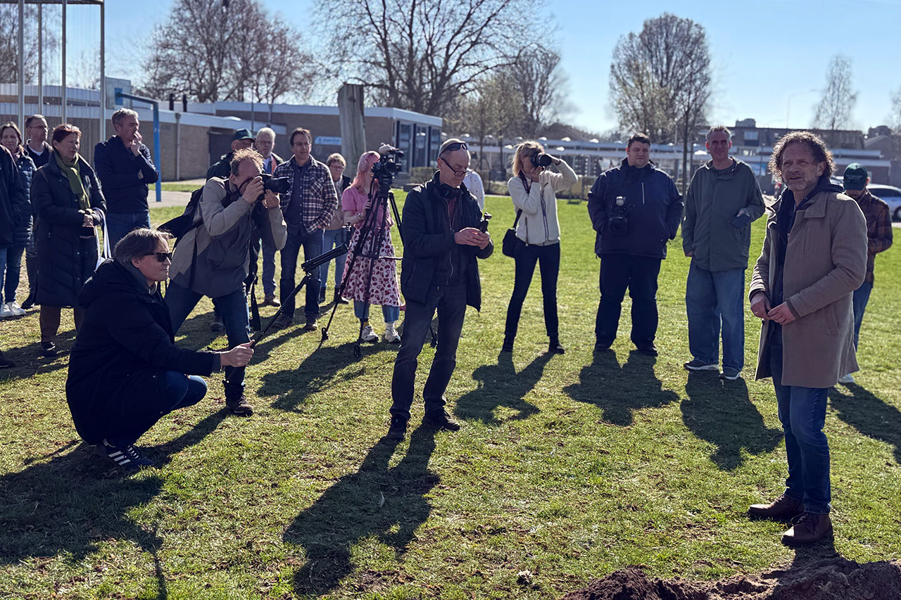 Elders in de wijk klonk op hetzelfde moment vuurwerk. Dat was niet per se gepland, maar het gaf de boomplanthandeling onbedoeld wel extra gewicht mee.