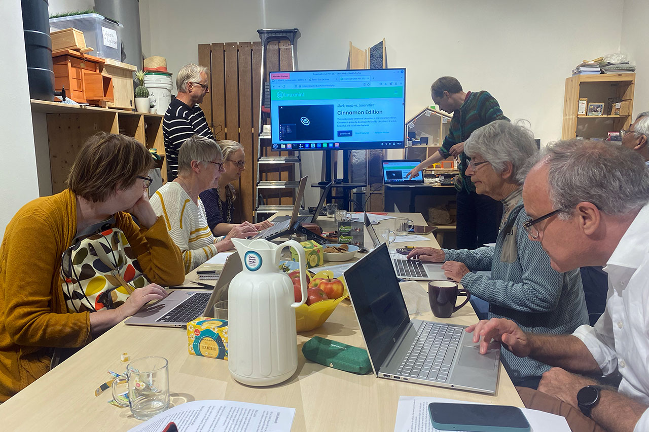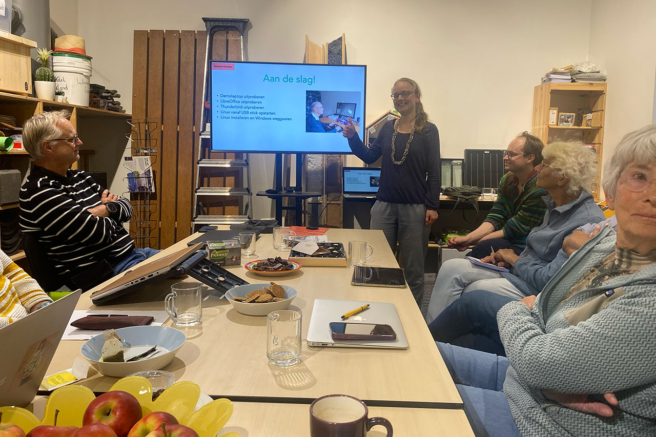 Uiteindelijk hebben we op een aantal laptops van geïnteresseerden ter plekke Linux geïnstalleerd. Voor een vliegende start met Linux, hebben we nog wat extra informatiebronnen verzameld op https://his.ke/pages/linux